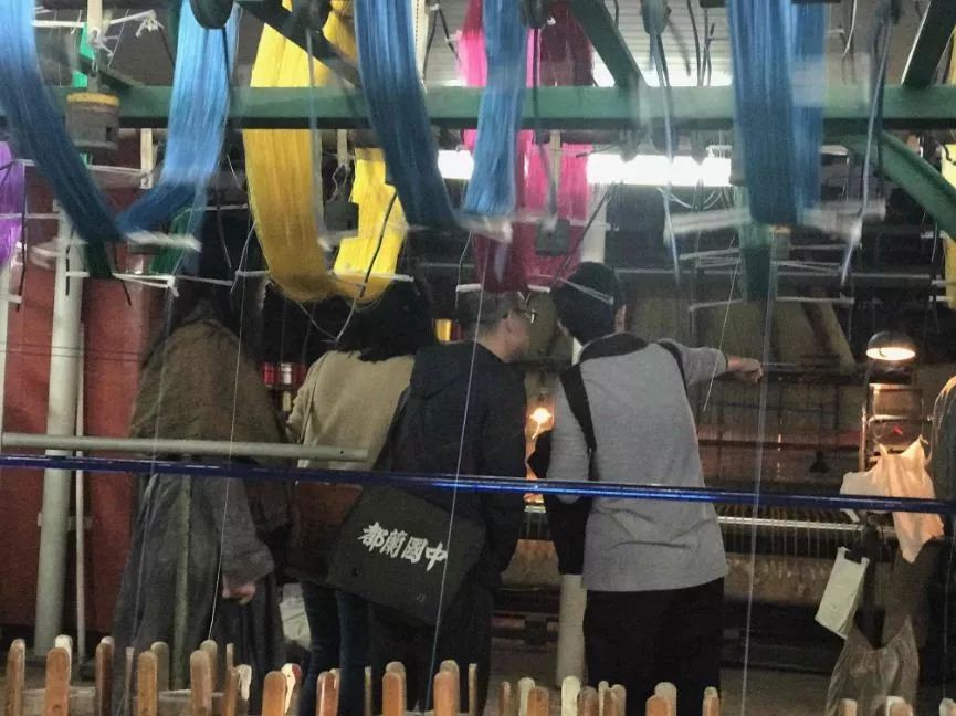 帶著這樣的感慨,我們移步都錦生織錦生產(chǎn)車間,聽苗師傅講解穿經(jīng)過程以及電子提花機和賈卡提花機效果的區(qū)別。