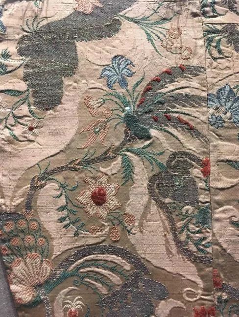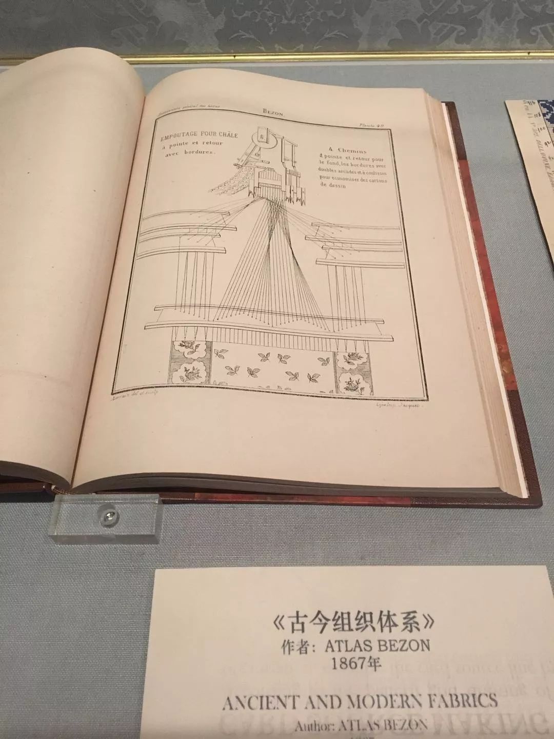 說到這里不得不再次感慨杭州這個絲織天堂的便利:市區(qū)里如“都錦生”這樣的老牌絲綢企業(yè),就有老式的Jacquard織機仍在運轉(zhuǎn);在絲博的“榮歸錦上:1700年以來法國絲綢”展中,還有現(xiàn)成的Jacquard織機構(gòu)造圖和法國提花織物可供研究……