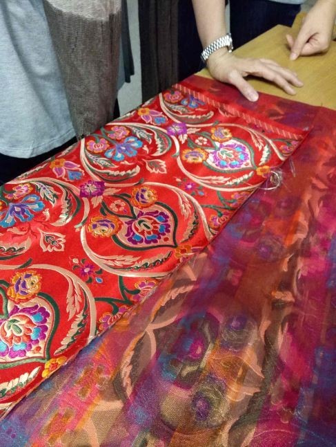 實地考察完生產(chǎn)過程,我們馬不停蹄趕回絲博,此時再看法國絲綢展,不由為提花之美傾倒。提花技藝由東方傳播到西方,當(dāng)?shù)厝巳诤狭俗约旱奈幕l(fā)揚光大,這難道不是最值得感慨與驕傲的事么?