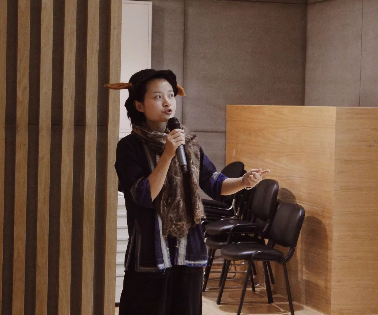 師生分享會(huì)于晚上7點(diǎn)在新猷資料館舉行,前來(lái)參加分享會(huì)的不僅有大學(xué)生、高校教師還有許多服裝設(shè)計(jì)師和紡織愛(ài)好者。聽(tīng)眾們都很好奇在中絲博女紅傳習(xí)館中,大家到底利用這六天時(shí)間學(xué)習(xí)到了什么。