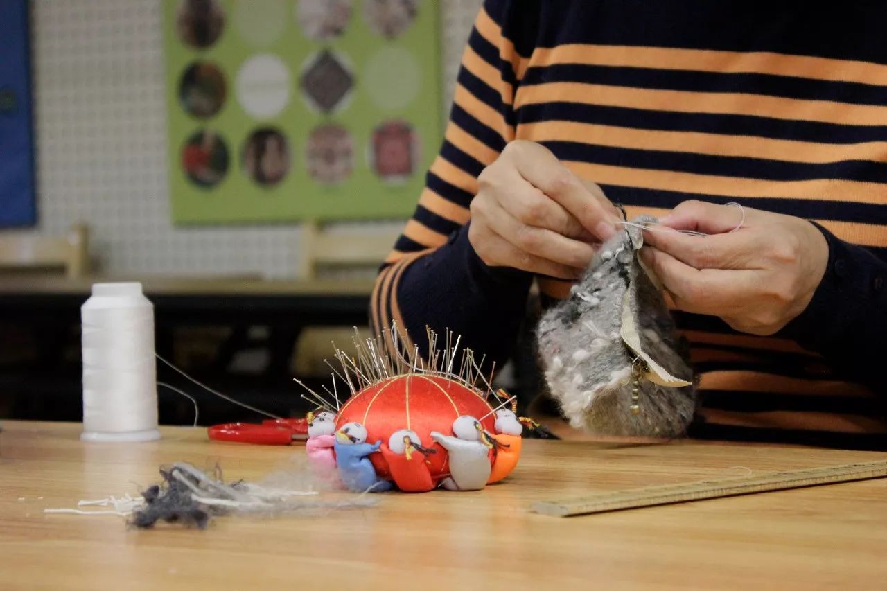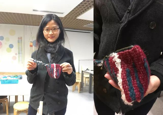 除了織布的基本技法,更讓人高興的是,耐心的冰冰老師還在縫制粽子包時教大家專業(yè)的手縫技巧。真是不一樣哎,從用線長度到打結手法,又快又好,我第一次知道了拉鏈邊上的兩道線是干什么用的。把一圈羊毛線變成一個小包包,從線到面再到三維立體,這個女紅手作課不同一般的高大上。