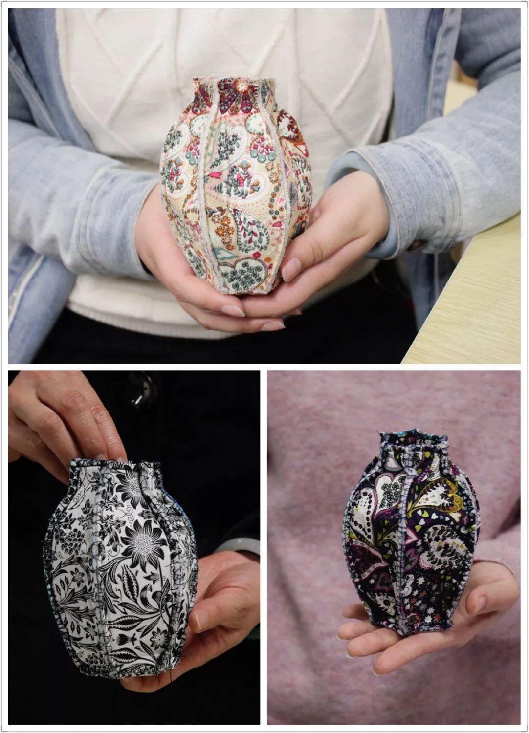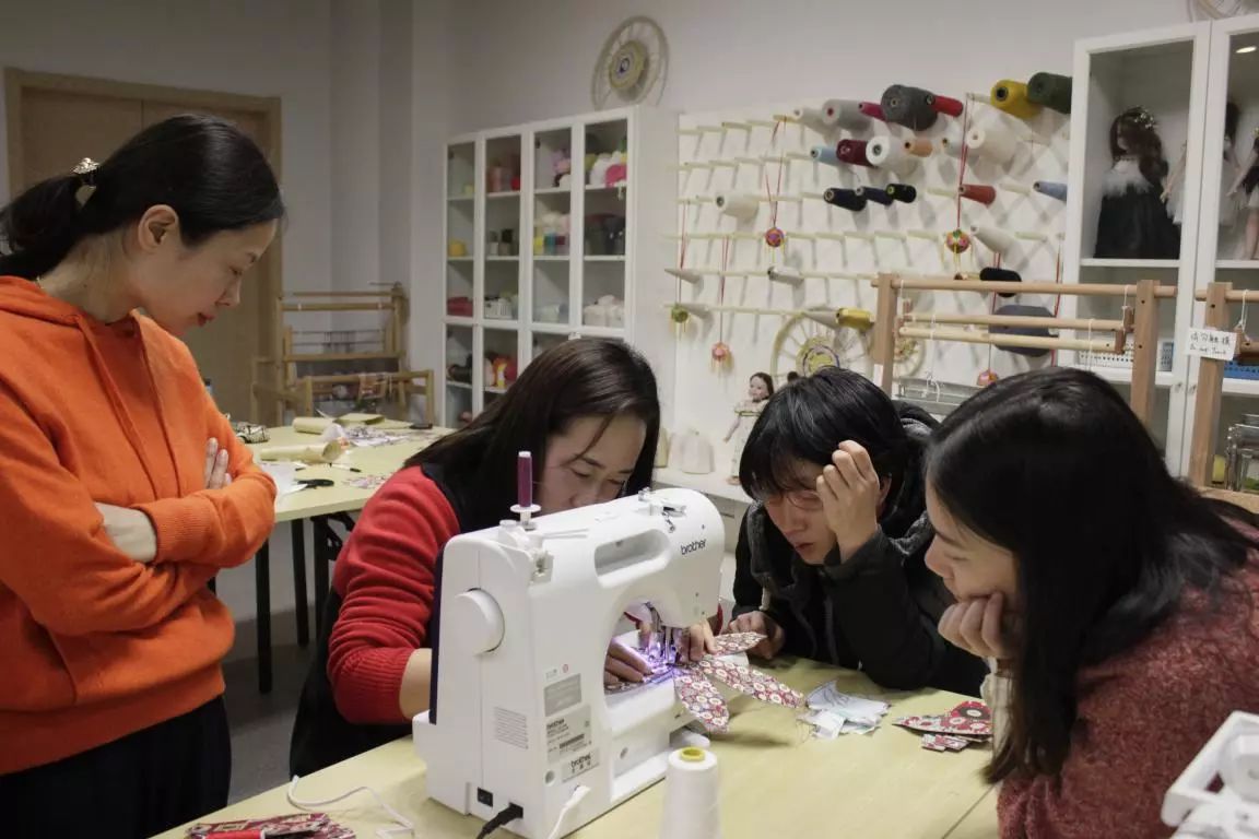 On February 24, the three-dimensional patchwork vase lesson ended successfully in the Textile Training Center. Most of the students used the sewing machine for the first time. They learned the basics of using sewing machine under the help of the counselor. Through a series of steps, like cutting, ironing and sewing, students harvested an interesting patchwork vase.
