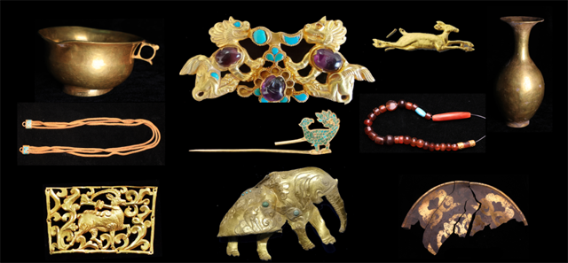 After three years of excavation, the general scope of the remains has been determined, a<a></a>nd the structure a<a></a>nd scale of the tombs have been understood. The tombs consist of two parts, the ground a<a></a>nd the underground. The ground is a cemetery building with a square plan, consisting of a tomb wall, a sacrificial building, as well as a cloister. The joint archaeological team found a long martyr pit in the tomb, a<a></a>nd buried 6 stallions between 4 a<a></a>nd 6 years old. Martyrs a<a></a>nd sacrifice pits were found in the tomb fill, a<a></a>nd animal bones such as cows, sheep, antelopes, rock sheep, a<a></a>nd yaks were unearthed in the pits. The tomb chamber is a wood-stone structure, consisting of a main tomb a<a></a>nd four side chambers. The main chamber has a red sa<a></a>ndstone coffin bed facing east a<a></a>nd west, a<a></a>nd the coffins are placed. Two individual human bones are found in the main chamber. More than 1,000 pieces of various cultural relics such as gold a<a></a>nd silverware, bronzeware, ironware, lacquered woodware, leather, jadeware, glassware a<a></a>nd textiles were unearthed in the tomb. The discovered cemetery sacrificial buildings, sacrificial pits, five-shen hall tomb structures, murals, colored coffins, a<a></a>nd exquisite relics unearthed, etc., were of great value to the studies the burial system a<a></a>nd burial customs of the Rehui area during the Tang (Tubo) period a<a></a>nd the relationship between the Tang Empire a<a></a>nd the ethnic minority relations,the history of Silk Road transportation, a<a></a>nd the history of material a<a></a>nd cultural exchanges.