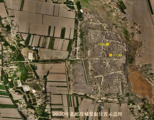 In 2020, the main archaeological achievement of Beiting Ancient City is the clearing of the large-scale building site No. 8, which is located 90 meters south of the north gate of the inner city. The site is an east-west rectangular structure a<a></a>nd a rammed earth platform in the south.It is now 15.8 meters wide f<a></a>rom north to south a<a></a>nd 30 meters long f<a></a>rom east to west. According to the materials such as superimposed breaking relationship a<a></a>nd wadang, it can be roughly divided into three stages, indicating that this is an important building that has been continuously reconstructed f<a></a>rom the Tang Dynasty to the Song Dynasty (including the Liao a<a></a>nd Xiliao) a<a></a>nd Yuan dynasties. In addition, artificial ponds half-encircling the Buddhist temple ruins were found in the ditch on the north a<a></a>nd west sides of the Gaotai Buddhist Temple Ruins No. 6 in the city. An adobe wall (0.8 meters wide) was also found on the west side of the Buddhist temple, which may be the courtyard wall of the Buddhist temple.The unearthed cultural relics include yellow-green glazed dragon body building components, statue fragments, porcelain pieces a<a></a>nd so on.