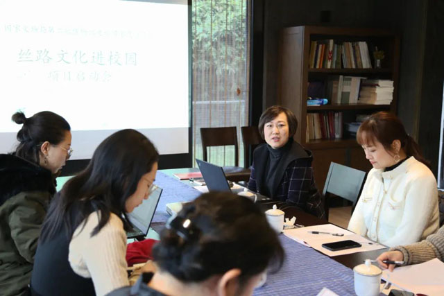 12月23日,國(guó)家文物局第二批博物館進(jìn)校園示范項(xiàng)目“絲路文化進(jìn)校園”啟動(dòng)會(huì)在國(guó)絲舉行。甘肅省博物館館長(zhǎng)賈建威、辦公室副主任黎李、陜西歷史博物館社教部主任步雁、內(nèi)蒙古博物院社教部主任烏蘭托婭、貴州省博物館社教部主任簡(jiǎn)小艷、寧波中國(guó)港口博物館陳列展示部(社會(huì)教育部)主任吳鳳作為協(xié)作單位代表應(yīng)邀參會(huì),中國(guó)絲綢博物館館長(zhǎng)趙豐、黨總支副書記周旸、社會(huì)教育部主任樓航燕、杭州銀美科技有限公司總經(jīng)理杭劍平等項(xiàng)目組成員列席會(huì)議。項(xiàng)目啟動(dòng)會(huì)由周暘書記主持。