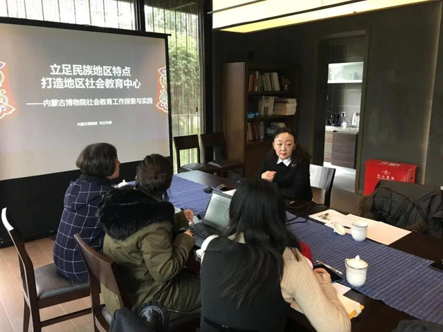 烏蘭托婭主任介紹了內(nèi)蒙古博物院行走中的博物館、相約周末、“博苑”講壇、小講解員培訓(xùn)班、互動(dòng)空間、綜合實(shí)踐課、流動(dòng)數(shù)字博物館等特色社教品牌以及打造地區(qū)社會(huì)教育中心的相關(guān)運(yùn)營(yíng)經(jīng)驗(yàn)。