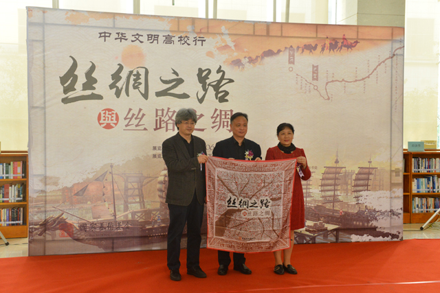 11月6日,在秋日暖陽中,中華文明高校行:“絲綢之路與絲路之綢”展在浙江工商大學(xué)圖書館開幕,展覽時間為11月6日-12月5日。