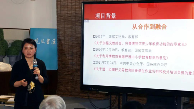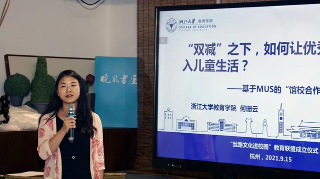 浙江大學(xué)教育學(xué)院副教授何珊云引導(dǎo)嘉賓們共同思考“雙減”之下,如何讓優(yōu)秀文化走入兒童生活。并提出將基于MUS(Museum-University-School)模式進(jìn)一步探索課程內(nèi)容豐富、學(xué)習(xí)方式創(chuàng)新、評價(jià)方案多元的“館校合作”浙江模式。