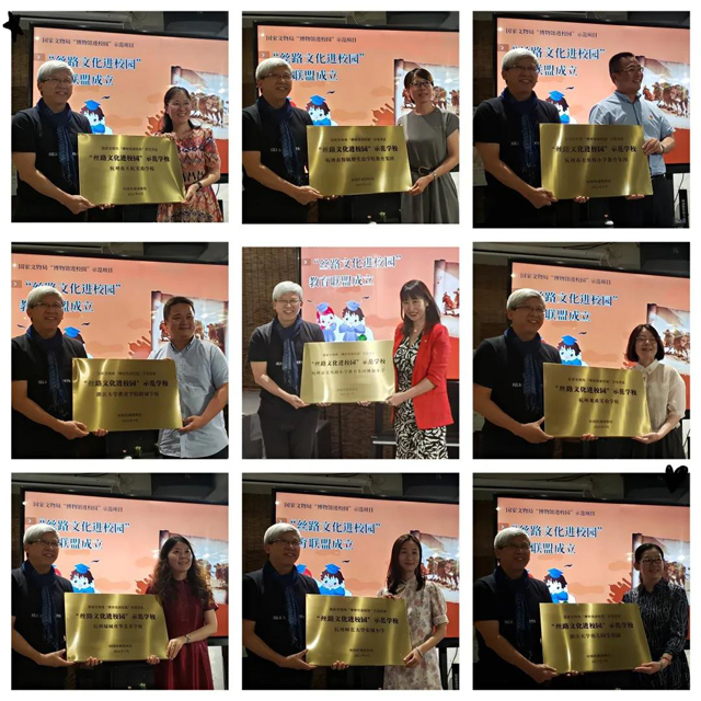 活動最后,由趙豐館長為九所聯(lián)盟學(xué)校頒發(fā)“絲路文化進(jìn)校園示范學(xué)?!便~牌。