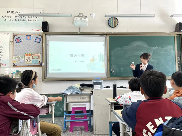 大蠶小世界的主講老師是盛勁男,她以蠶的一生為切入點(diǎn),了解蠶在不同時期的變化,通過絲路上關(guān)于蠶的故事以及繪制蠶繭畫,重點(diǎn)了解蠶桑文化和蠶桑經(jīng)濟(jì),學(xué)生可以通過蠶繭畫或蠶花制作更好地了解蠶桑文化,傳播絲路故事。