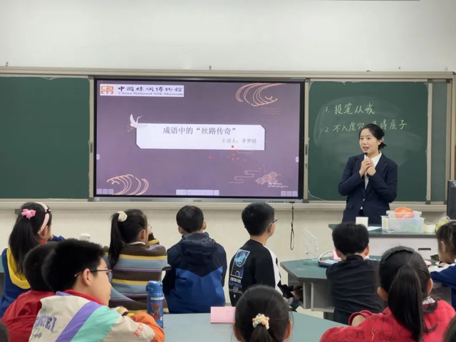作為國家文物局“博物館進(jìn)校園”示范項(xiàng)目, 中國絲綢博物館的“絲路文化進(jìn)校園”項(xiàng)目組織社教團(tuán)隊分別從“走進(jìn)絲路”“小蠶大世界”“小小織造家”“云想衣裳花想容”“錦繡文章”五個板塊籌備絲路課程,積極推進(jìn)展覽進(jìn)校園、活動進(jìn)校園、課程進(jìn)校園,本學(xué)期絲路課程分別走進(jìn)杭州師范大學(xué)東城小學(xué)、湘師實(shí)驗(yàn)小學(xué),推動博物館教育在學(xué)校場域中的實(shí)踐。