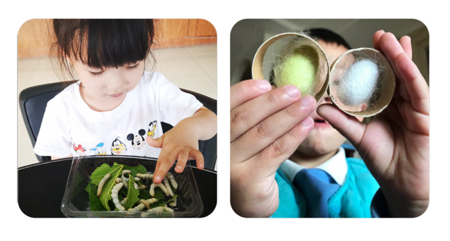 養(yǎng)蠶期間將組織前往國家商務部集約化規(guī)模化蠶桑示范基地、中國絲綢博物館蠶桑基地——小云龍蠶桑樂園,進行現(xiàn)場采集新鮮桑葉的活動,讓小朋友走進原生態(tài)的種桑養(yǎng)蠶田園,親近綠色大自然,為自己飼養(yǎng)的蠶寶寶采集新鮮口糧。