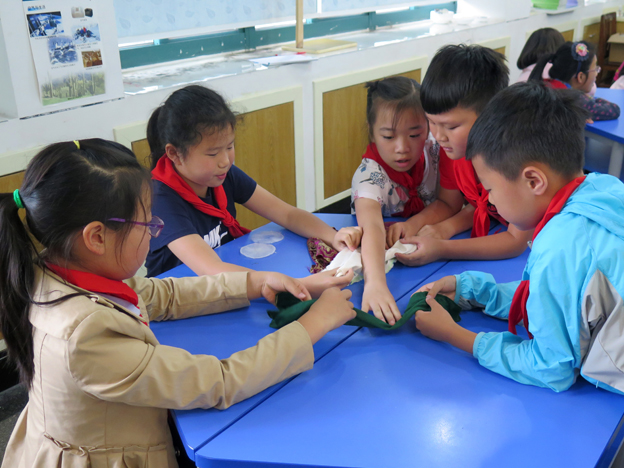 去年年末,中國(guó)絲綢博物館和浙江省博、自然館三家省級(jí)博物館加入杭州市第二課堂大家庭。但由于中絲博為了迎接G20,處于緊張的改擴(kuò)建工程建設(shè)中,無(wú)法在館內(nèi)開展相關(guān)教育活動(dòng)。在近期,中絲博主動(dòng)將活動(dòng)開展到第二課堂結(jié)對(duì)子的文三教育集團(tuán)校園里。