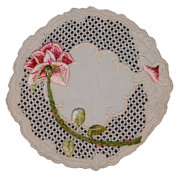 白色花卉刺繡蕾絲杯墊