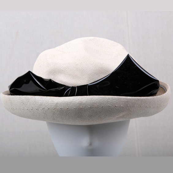 白底黑色漆皮蝴蝶結(jié)裝飾草帽