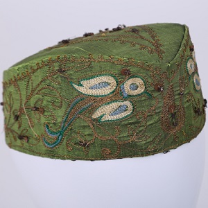 草綠色底金屬線刺繡平頂帽