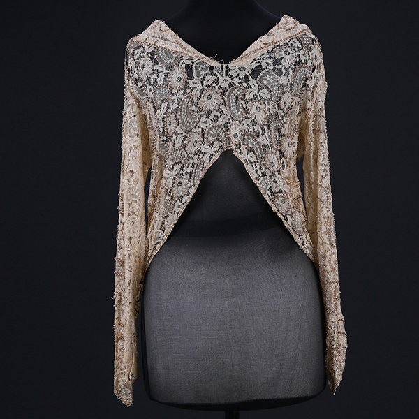 米黃色釘珠幾何花卉紋蕾絲上衣