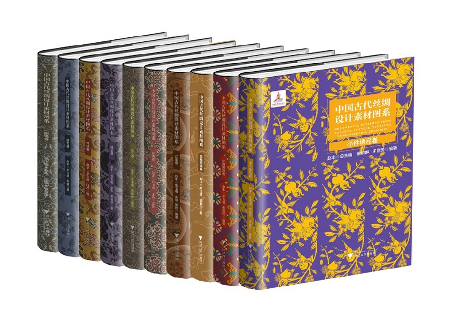 “中國古代絲綢設計素材圖系”系列叢書是國家科技支撐計劃項目“中國絲綢文物分析與設計素材再造關鍵技術研究與應用”(2013BAH58F00)的研究成果之一,并入選2018年國家出版基金項目。叢書由中國絲綢博物館牽頭,聯(lián)合浙江大學、東華大學、浙江理工大學、浙江工業(yè)大學、浙江科技學院等多所高等院校的學者專家,通過對中國絲綢文物的基本素材的收集與整理,進行設計素材的研究,按照絲綢文物的年代和類型集結(jié)成十冊,最終由浙江大學出版社出版。