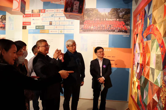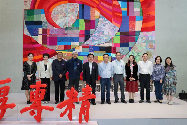發(fā)布會(huì)后,與會(huì)嘉賓共同參觀“寬厚專精:中國絲綢博物館30周年回顧展”和錦合大型拼布,趙豐館長介紹了國絲的發(fā)展歷程以及研究型、全鏈條、國際化、時(shí)尚范四大特色,并在拼布藝術(shù)作品前集體合影留念。