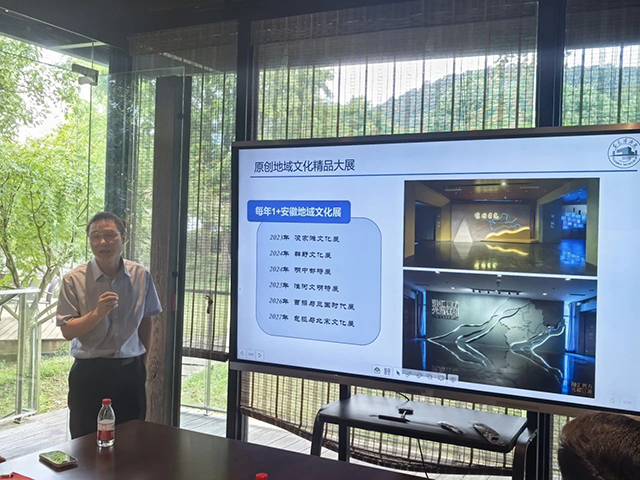 雷修佛院長(zhǎng)分享近年來(lái)安徽博物院的地域文化展、絲路引進(jìn)展覽和輸出展覽,重點(diǎn)展示智慧博物館建設(shè)、文博領(lǐng)域技術(shù)創(chuàng)新、破圈傳播和文博IP打造方面的創(chuàng)新,認(rèn)為未來(lái)博物館的策展和活動(dòng)思路要提升公眾的互動(dòng)參與程度。
