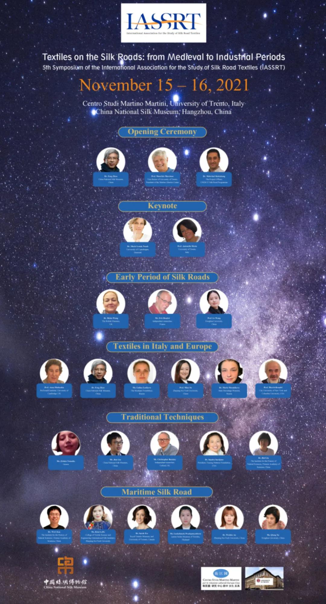 受新型冠狀病毒影響,原定于2020年9月29日至10月4日在意大利特倫托舉行的以“絲路之綢:從中世紀(jì)到工業(yè)時(shí)代”為主題的第五屆絲路之綢研究聯(lián)盟(IASSRT)學(xué)術(shù)研討會(huì)將于2021年11月15日-16日在杭州和特倫托在線共同舉辦。