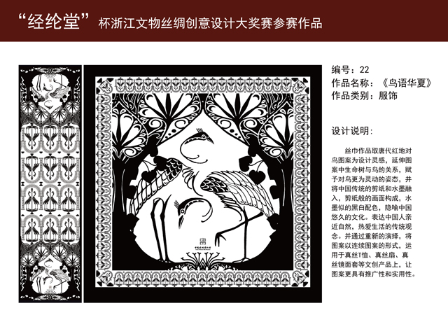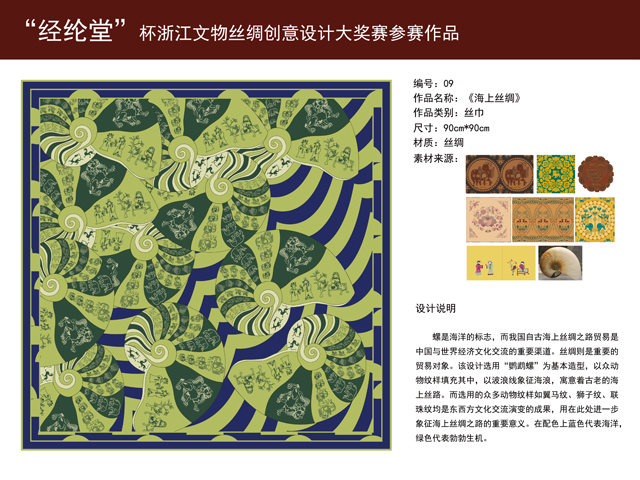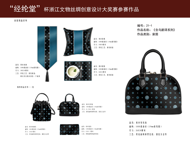 自2017年2月28日“經(jīng)綸堂”杯浙江文博絲綢創(chuàng)意產(chǎn)品設(shè)計(jì)大獎(jiǎng)賽啟動(dòng)之日起,全國(guó)設(shè)計(jì)愛(ài)好者踴躍參加,經(jīng)大賽組委會(huì)5月3日的預(yù)審和5月7日的專家評(píng)審,評(píng)出一等獎(jiǎng)1名,二等獎(jiǎng)2名,三等獎(jiǎng)3名,優(yōu)勝獎(jiǎng)35名。具體獲獎(jiǎng)名單如下: