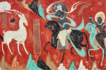 《九色鹿經(jīng)圖》是敦煌北魏洞窟壁畫的經(jīng)典之作,繪于敦煌257號(hào)洞窟中,也是莫高窟最優(yōu)美的壁畫之一。九色鹿也象征著美麗、善良和正義。