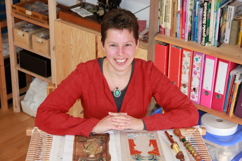 Jessica Grimm女士生于荷蘭, 在有400多年歷史的荷蘭格羅寧大學(xué)獲得了考古學(xué)博士學(xué)位,期間接觸到紡織品修復(fù)工作, 愛上針線。 其后她于RSN(1872年創(chuàng)辦的英國皇家刺繡學(xué)院,Royal School of Needlework)修讀,并成為RSN導(dǎo)師。2014年,杰西卡與丈夫移居德國, 在慕尼黑附近的巴伐利亞阿爾卑斯的工作室教授刺繡工藝 。