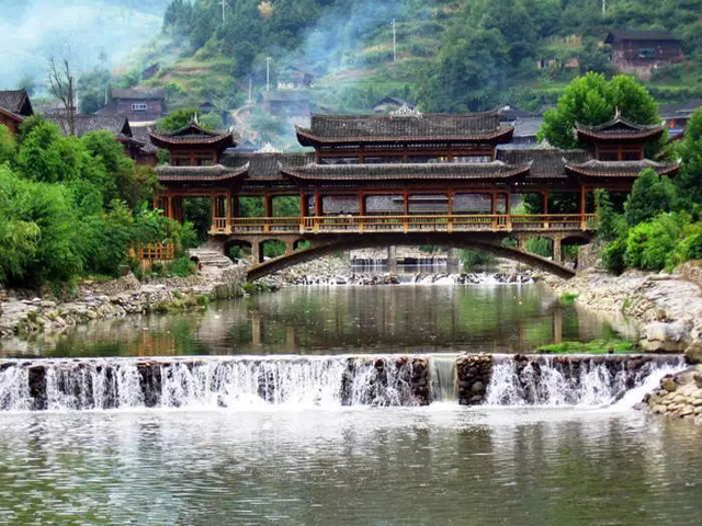 【苗家風(fēng)雨橋】西江千戶苗寨的風(fēng)雨橋連接著白水河兩岸。