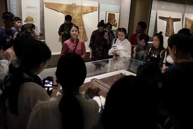 優(yōu)秀講解員鐘紅桑講解基本陳列“錦程:中國絲綢與絲綢之路”
