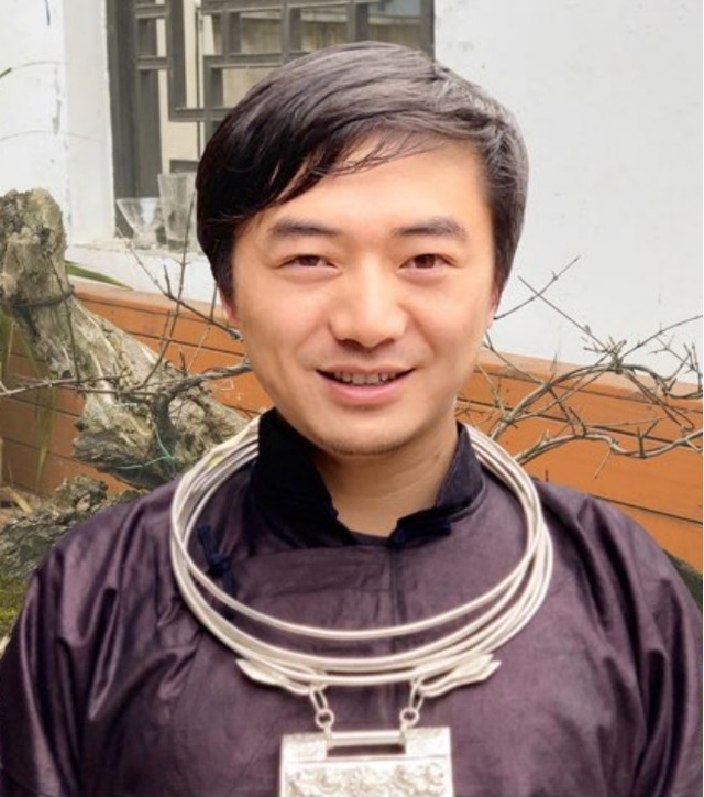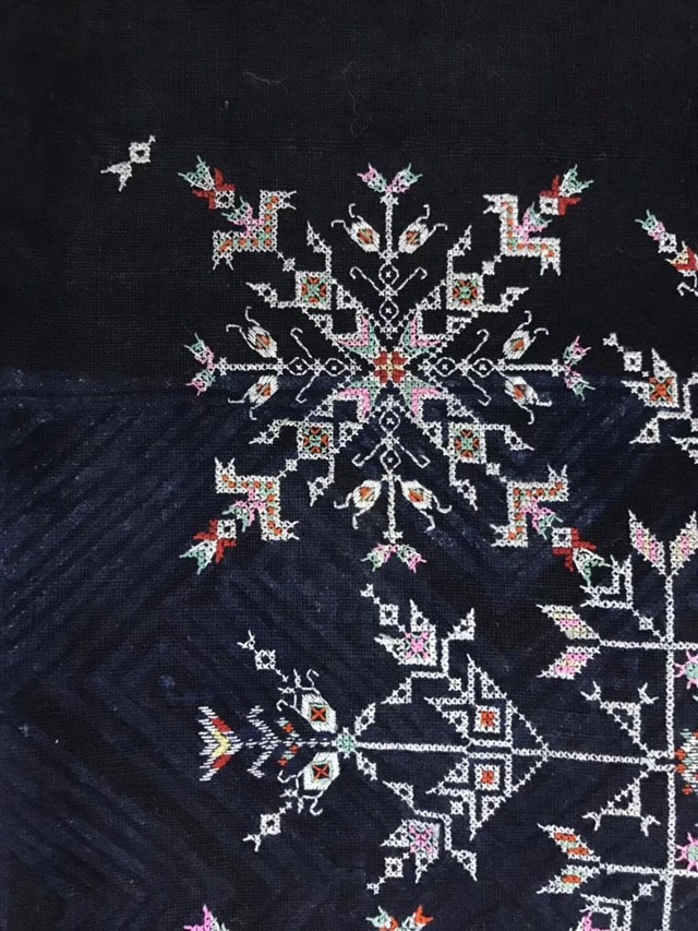 苗族,多年來(lái)深入西南少數(shù)民族地區(qū)走訪調(diào)研傳統(tǒng)手工技藝,收藏整理大量原生態(tài)服飾精品,在傳統(tǒng)材料、技法復(fù)原方面頗有心得,也是花溪風(fēng)格傳統(tǒng)蠟染復(fù)興的重要推動(dòng)者。