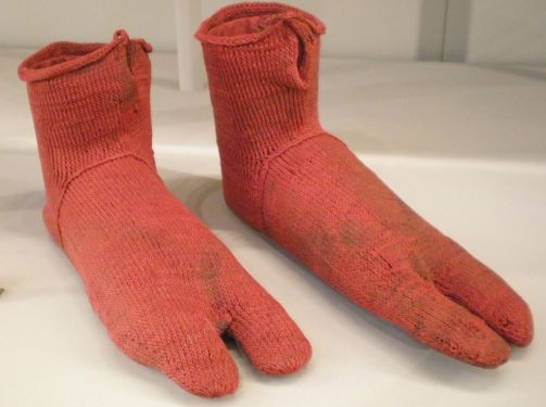 倫敦維多利亞和阿尓伯特物館收藏的埃及祙子, 來自公元300–500年。 這是已知最早存世的襪子,有今天的針織結(jié)構(gòu), 是一種稱為naalbinding編法。