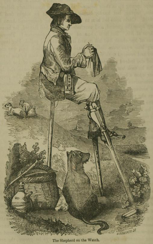 20世紀(jì)初、法國(guó)東南部的牧羊人以高蹺提高視線來管理羊群, 還可善用時(shí)間打毛線
