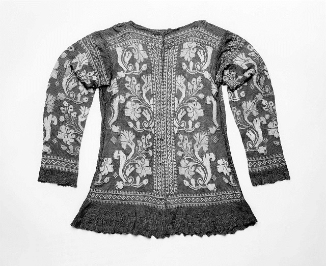 美國(guó)波士頓美術(shù)館收藏的17世紀(jì)針織上衣, 材料為蠶絲及金屬線