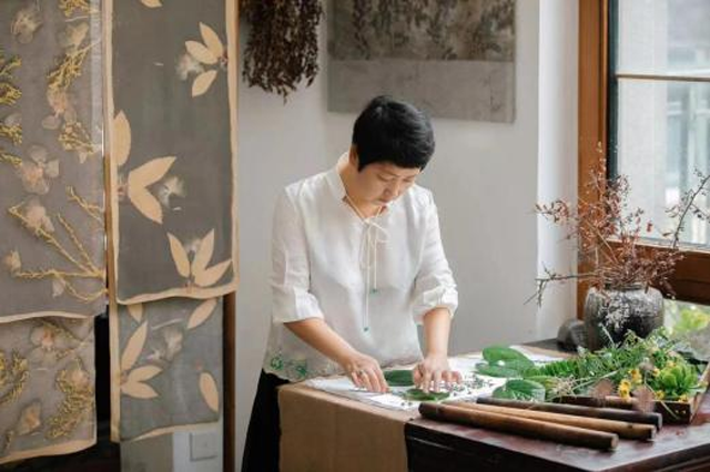 生態(tài)印染(Eco Print)是利用天然色素與媒染劑發(fā)生反應(yīng),在各種天然纖維載體上留下印記的方法,植物熱轉(zhuǎn)印是其中一種技術(shù)。本次工坊由“花韻濃”植物印染工作室的逄文娟老師主持,從植物的選擇,媒染劑的使用及諸多細(xì)節(jié)入手,通過加熱來完成植物色彩轉(zhuǎn)印,在水彩紙上留下葉子和花朵的唯美印記,呈現(xiàn)水墨山水的效果。