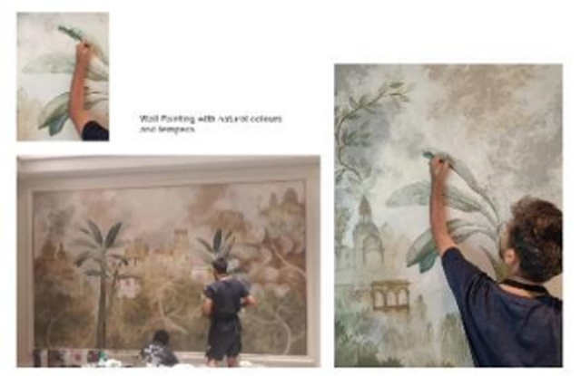 印度特色墻繪是一種傳統(tǒng)的藝術(shù)形式,通常是在公共場所、寺廟或家庭墻壁上繪制各種圖像,反映了當(dāng)?shù)氐奶厣幕?。本次墻繪工坊將由Jit Chowdhury老師指導(dǎo)學(xué)員使用天然染料共同創(chuàng)作一副完整的墻繪作品。該作品將有望被中國絲綢博物館收藏。