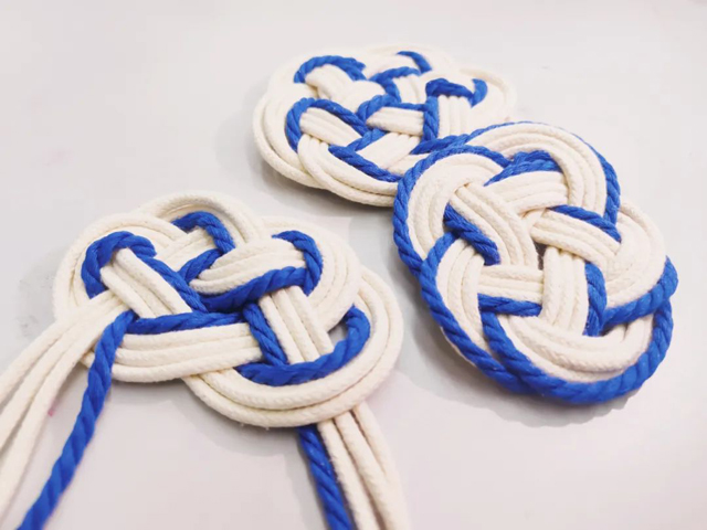 中國結編織技法很多圖案是用一個線貫穿整件作品的技法,在西方Macramé編織也是一種傳統(tǒng)手工藝,源自于古代中東和北非地區(qū),本次活動采用中國結和的Macramé編織結合的方式來編織一個創(chuàng)意杯墊。