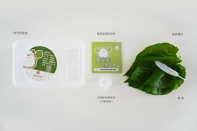 面向所有參加活動(dòng)的小朋友,免費(fèi)發(fā)送蠶寶寶科普套裝,套裝包含20顆以上蠶卵(彩色繭蠶寶寶蠶卵)+2個(gè)蠶寶寶飼養(yǎng)盒+飼養(yǎng)手冊(cè)+羽毛。