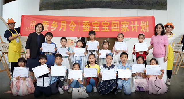 在養(yǎng)蠶活動(dòng)結(jié)束后開展“蠶寶寶回家”活動(dòng),組織小朋友們將蠶繭和蠶卵送回中國絲綢博物館,并通過各類主題活動(dòng),深入學(xué)習(xí)絲綢文化,讓他們感受從蠶繭到蠶絲再到布料的整個(gè)過程。