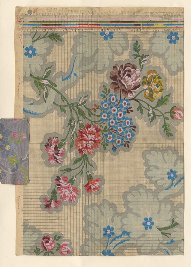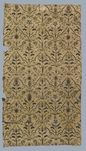 重緯挖花織物,底部小花紋組織,賈卡提花