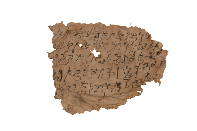 新疆營盤出土佉盧文文書殘片,長11.5,寬9.2cm