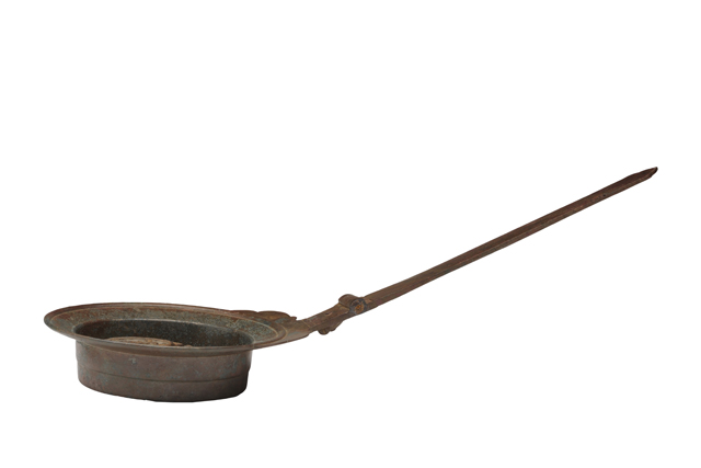 唐李倕墓出土同熨斗,口徑7.8、腹徑7.9、底徑7.4、柄長18.7、寬1.9cm