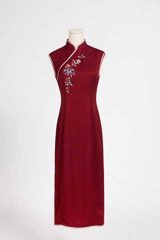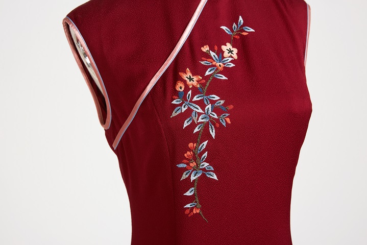 This Qipao used Silk Textile, with the olive embroidery at the front, representing our country’s prosperity, and wishing peace for the whole world.
