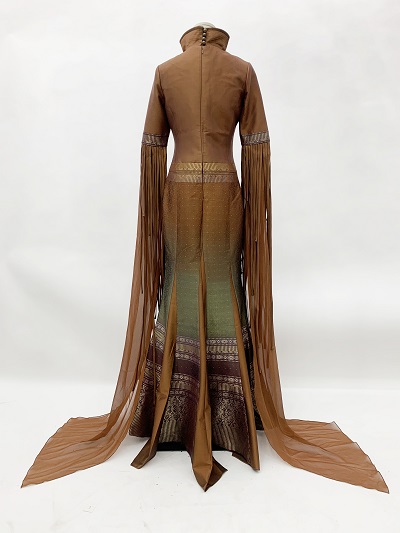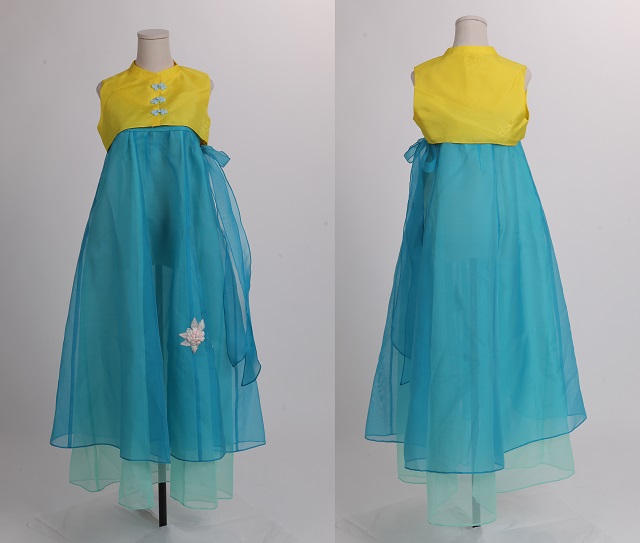 The dress contains many kinds of bright and dark colors, showing greens in noble and lively ways. There are lots of colors on the cover like a garden. This dress is now collected in China National Silk Museum.