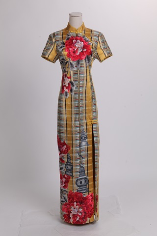 This dress is combining the cultures of Thailand and China. The traditional Qipao structure with the material from Thailand Lamphun, shows how charming both the cultures are.