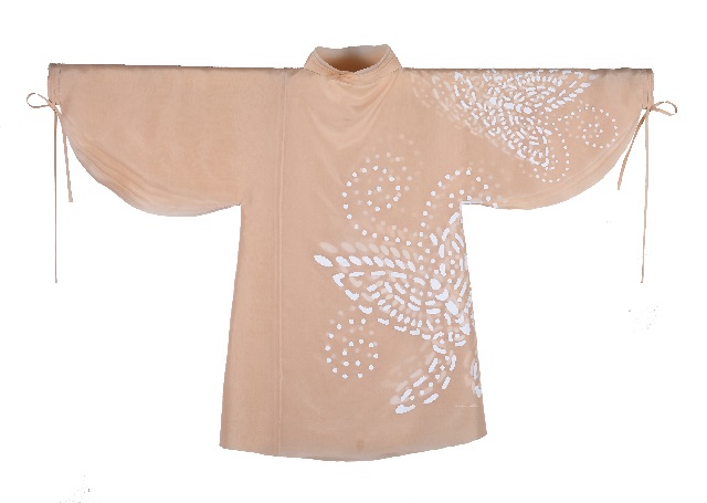 This pattern links the mountain and water together by splashing ink. The shoulder slope on one side represents the cliff and mountain slope. The long sleeve on the other side is like the ink was splashed.