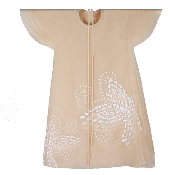 Via screen printing technique and mismatching the butterfly patterns, after sewing then resulted with the layered effect. It is to emphasise the changing world, like the saying, “the only unchanging thing is the change itself”.