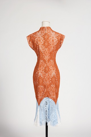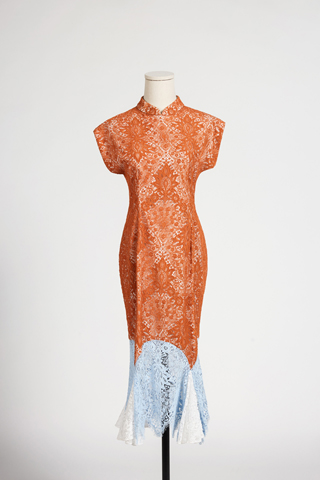 The designer has made a unique interpretation to qipao fashion. Qipao can be classical, but also can combine with fashion dress. The designer kept the special curve design of qipao, at the same time, to emphasize the curve of buttocks, she deliberately added a small skirt with three gradations as the finishing touch.