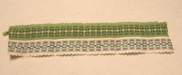 中國傳統(tǒng)服飾長久以來一直保持著二維的平面造型,綴縫各式緣邊是其主要的裝飾手段,除了用華麗厚實的織物外,各種特別織造的寬窄帶子也被用作緣飾的材料,我們通常稱之為“花邊”,古時也叫作“絳帶”“絳子”“闌干”等等。從考古實物中看,早在兩千多年前的戰(zhàn)國服裝上就有花邊的使用,此后歷代均有延用,清代特別是晚清時期各式花邊應用之廣泛達到了登峰造極的程度,除了男女服裝外,鞋、襪、帽及荷包等佩飾上也都大量使用,有的甚至綴縫有十幾道花邊,極富裝飾效果。民國以降,隨著服裝款式的不斷演變和面料花樣的不斷更新,機織花邊的使用已不如鼎盛時期那么流行,但其原料更為多樣,除了傳統(tǒng)的蠶絲和棉之外,還有人造絲、金銀線、錦綸、晴綸和滌綸等,在圖案題材上也有一定的時代突破,是中國染織藝術史中的一份珍貴遺產(chǎn)。