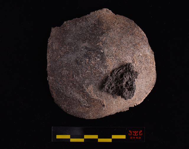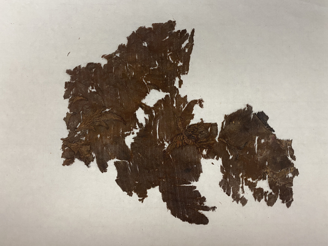 碳化絲綢(距今5000余年,河南鄭州汪溝遺址甕棺出土,鄭州市文物考古研究院藏)